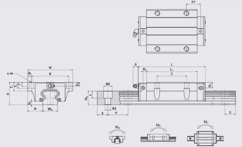 Because of the four-row design, the MSQ series linear guideway has equal load ratings in the radial, reverse radial and lateral directions. Furthermore, the circular-arc groove provides a wide-contact width between the balls and the groove raceway allowing large permissible loads and high rigidity.